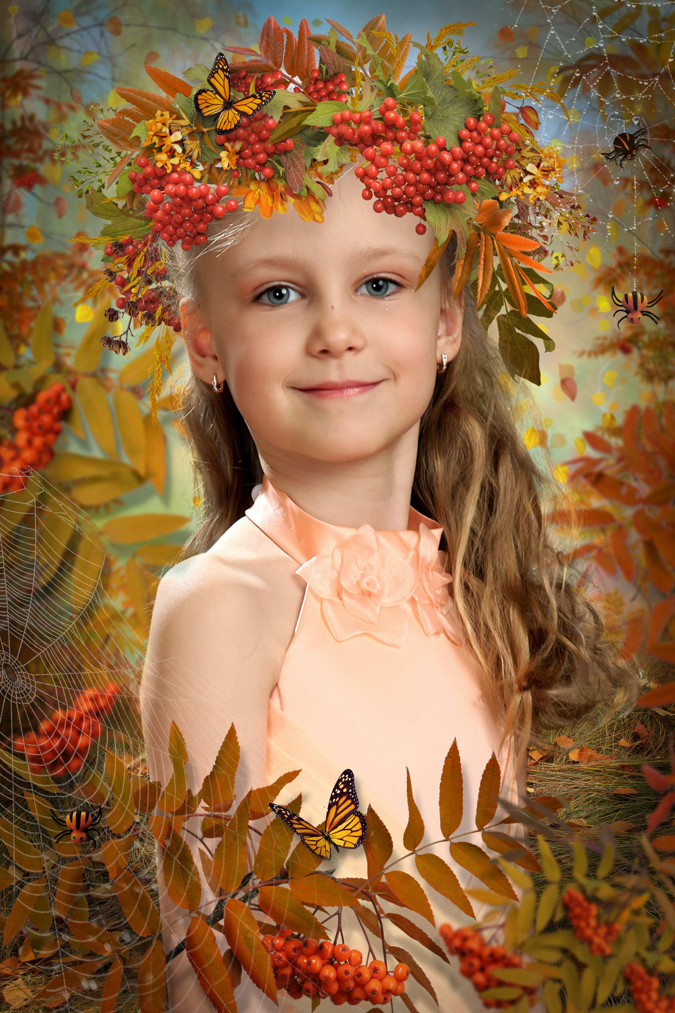 Осенний коллаж для портретного фото - Рябиновый венок