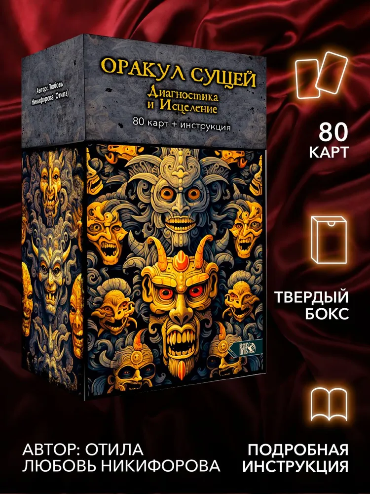 Данный Оракул создан на основе преданий и энциклопедических данных. Работая с ним, вы сможете понять, что в вашей жизни пошло не так и определить причины происходящего с вами. Это позволит вовремя принять меры по защите себя и своей семьи, а также отношений с близким окружением и бизнеса. Каждая карта раскрывает характеры людей, а также их намерения в отношении вас. С помощью этого Оракула вы разовьете видение и научитесь чувствовать энергии, и сорвав маски с псевдодрузей и партнёров вы обеспечите себе защиту. Анализируйте происходящее с вами, изучайте, включайте все свои способности, чтобы оградить себя и своих близких от негатива.